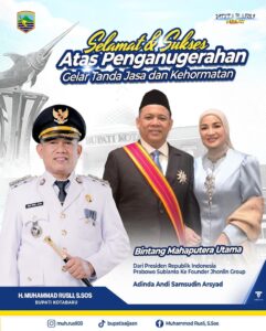 kabarjujur.com –KOTABARU – Pemerintah Kabupaten Kotabaru memberikan apresiasi setinggi-tingginya kepada H. Andi Syamsudin Arsyad (Haji Isam) atas penganugerahan Tanda Kehormatan Bintang Mahaputera Utama oleh Presiden