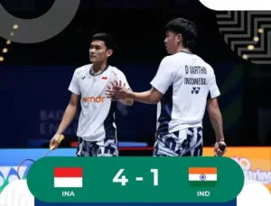 Kabarjujur.com – Ganda putra Indonesia Muhammad Shohibul Fikri/Daniel Marthin sukses menjadi penentu kemenangan tim Merah Putih atas India dalam laga kedua Grup B Piala Sudirman