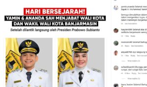 Kabarjujur.com , Jakarta – Pasangan Wali Kota dan Wakil Wali Kota Banjarmasin terpilih, H. Muhammad Yamin HR dan Hj. Ananda, telah resmi dilantik oleh Presiden