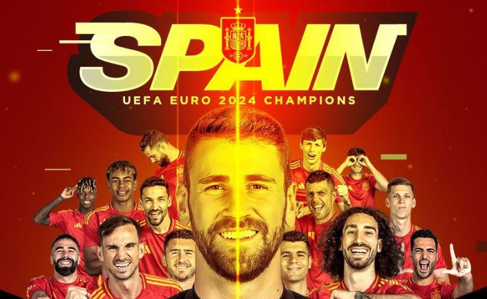Unai Simon; Dani Carvajal, Robin Le Normand (Nacho Fernandez 83), Aymeric Laporte, Marc Cucurella; Fabian Ruiz, Rodri (Martin Zubimendi 46), Dani Olmo; Lamine Yamal (Mikel Merino 89), Alvaro Morata (Mikel Oyarzabal 68), Nico Williams.
