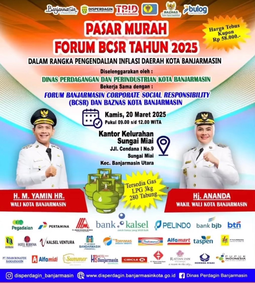 Pasar murah ini merupakan hasil kerja sama antara Disperdagin Kota Banjarmasin, Forum Banjarmasin Corporate Social Responsibility (BCSR), dan Baznas Kota Banjarmasin.