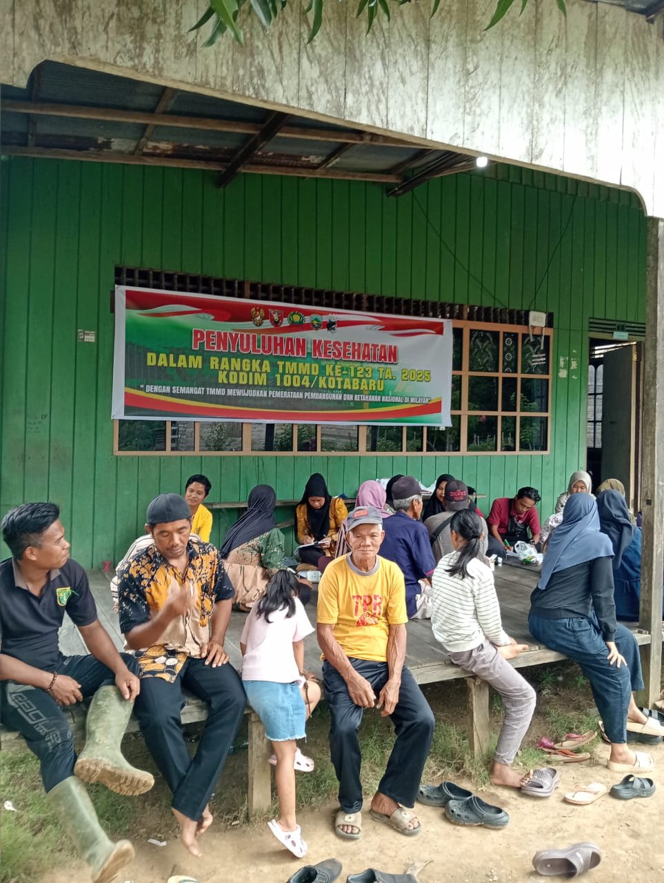 , Kotabaru – Satuan Tugas (Satgas) Tentara Manunggal Membangun Desa (TMMD) ke-123 Kodim 1004 Kotabaru menggelar sosialisasi kesehatan bagi masyarakat Desa Talusi, Kecamatan Pamukan Selatan, Selasa (13/5/2025). Kegiatan ini bertujuan meningkatkan kualitas hidup masyarakat dengan memberikan edukasi kesehatan dasar, terutama bagi warga yang memiliki keterbatasan akses terhadap layanan medis.