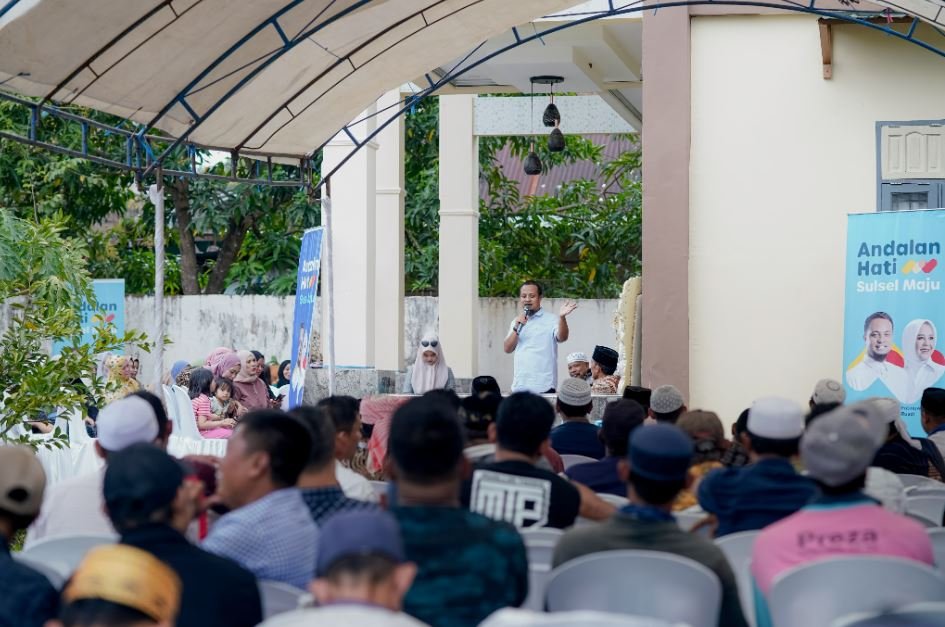 MAROS – Bakal Calon Gubernur Sulawesi Selatan, Andi Sudirman Sulaiman mendengarkan aspirasi masyarakat di Lingkungan Sanggalea, Kelurahan Taroada, Kecamatan Turikale, Kabupaten Maros, Selasa 10 September 2024.